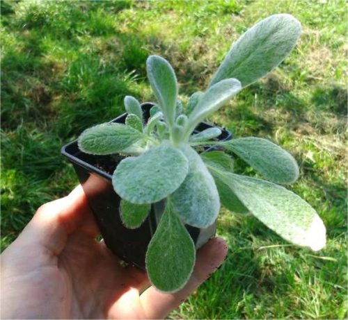 Ma liście z białym owłosieniem, kwiaty są drobne w kolorze jasnożółtym, kwitnie w drugim roku.
