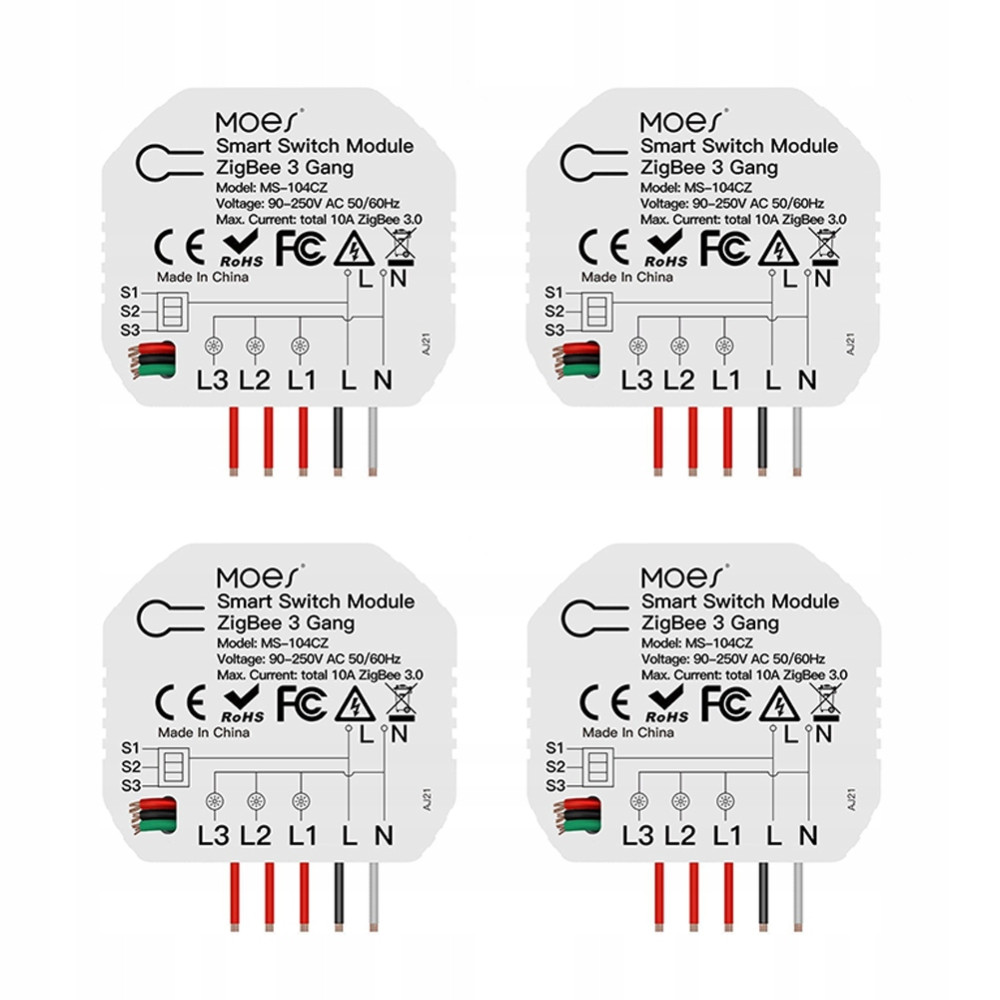 Moduł MOES Tuya Zigebee DIY Inteligentny włącznik światła 3 Gang 1 2-drożny przerywacz 4SZT