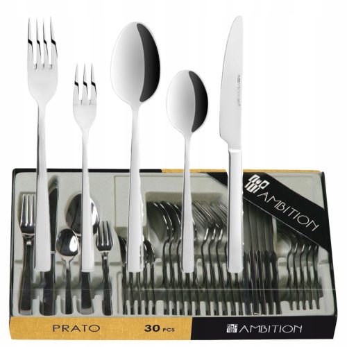 Komplet sztućców 30-elementowy wykonany z wysokiej jakości stali nierdzewnej w stylu modern.