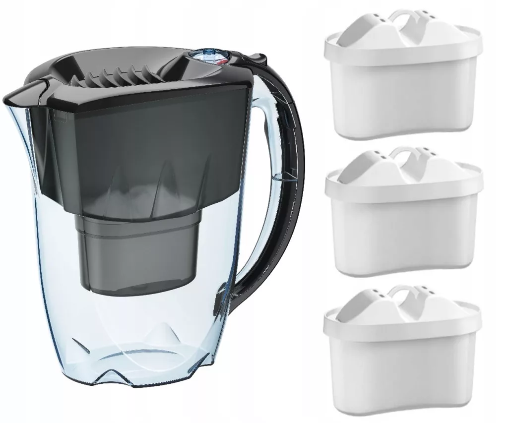 Dzbanek filtrujący Amethyst o pojemności 2.8 l (pojemność wody filtrowanej 1.5 l), prędkość filtracji wynosi 3 - 10 minut, posiada mechaniczny wskaźnik zużycia wkładu oraz otwieraną pokrywkę żebrowaną. W zestawie znajdują się 3 wkłady filtrujące B100-25 Maxfor o wydajności 200 l, które oczyszczają wodę z osadów (rdza, piasek, szlam), związków chloru organicznego, metali ciężkich (żelazo, ołów, rtęć, miedź), produktów ropopochodnych i fenoli.
