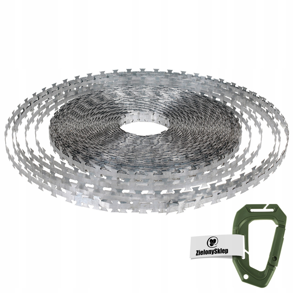 Po skręceniu taśmy otrzymuje się drut do zasiek z możliwością zastosowania pojedynczej żyły na ogrodzeniu.Taśma po skręceniu jest otoczona żyletkami z każdej strony.