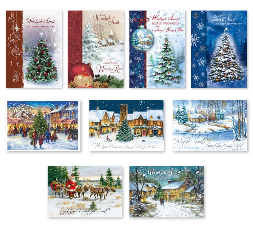 Kartki świąteczne bez życzeń wewnątrz komplet 9 szt