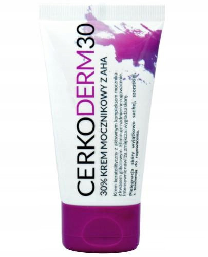 Cerkoderm 30% krem mocznikowy z AHA to krem keratolityczny z aktywnym kompleksem mocznika z kwasem glikolowym. Eliminuje nadmierne rogowacenie. Intensywnie nawilża, zmiękcza i wygładza skórę.