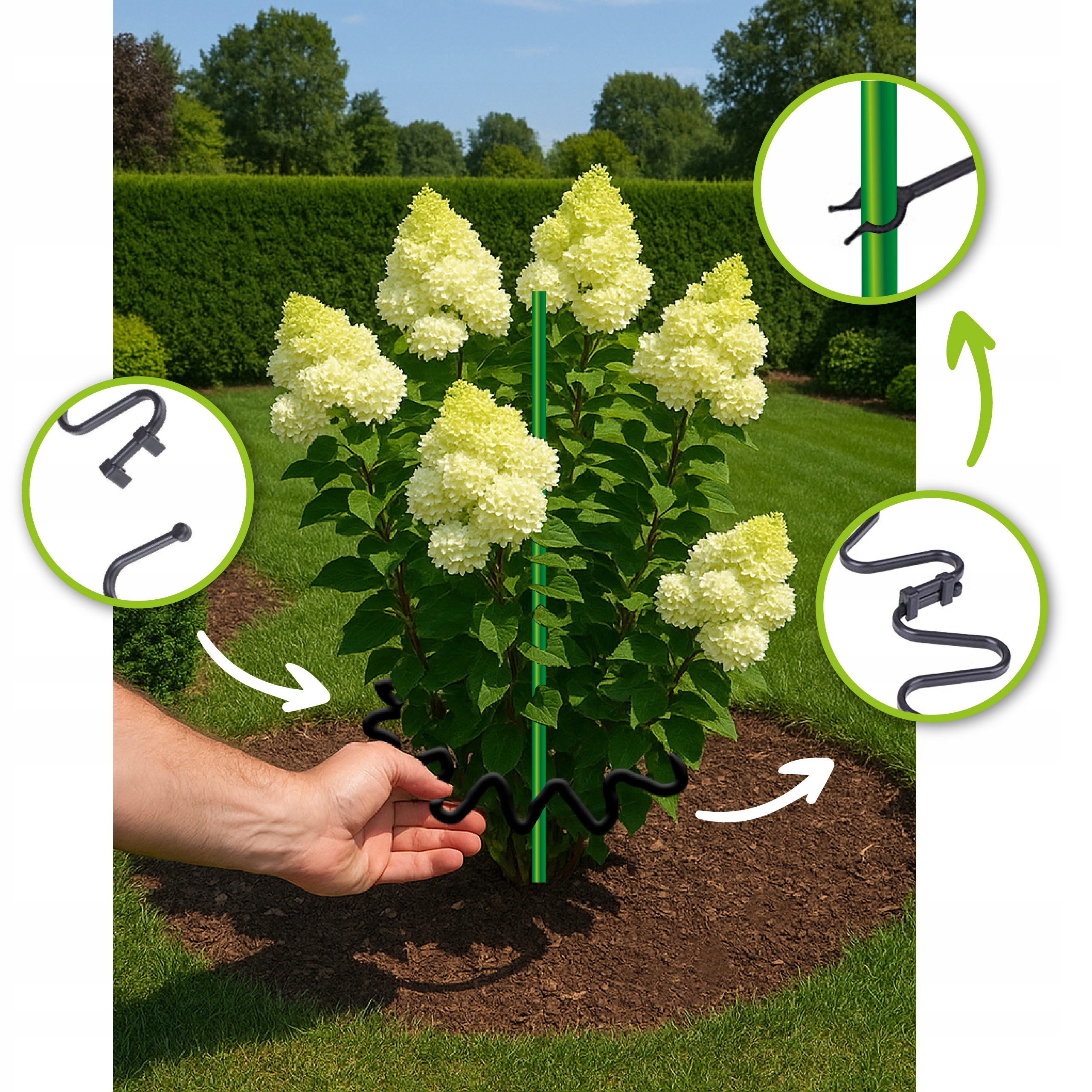 Tak się składa że wymyślono produkt, który ucieszy niejednego działkowicza -  znakomicie utrzymuje hortensję jak i inne rośliny ogrodowe takie jak piwonie, trawy pampasowe, budleje, rudbekie, jeżówki, koleusy, mieczyki, floksy, róże pnące oraz wiele, wiele innych roślin. Niektórzy klienci używają obejm również do kwiatów domowych czy podtrzymywania papryki lub pomidorów podczas uprawy.