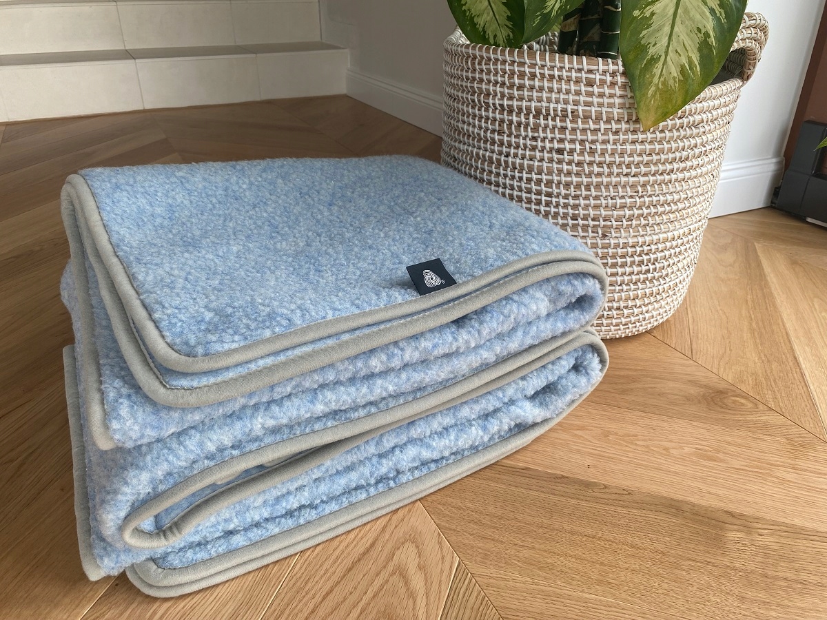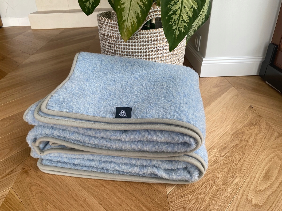 Koc wełniany MERYNOS TUMBLER JASNO NIEBIESKI bardzo ciepły i puszysty NOWOŚĆ