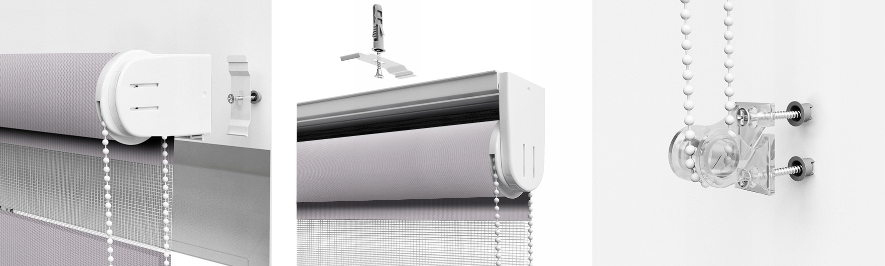 Montaż: inwazyjny; przy pomocy kołków rozporowych do ściany, sufitu lub górnej części wnęki okiennej