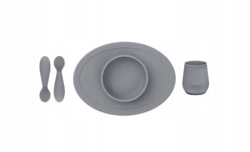 Komplet silikonowych naczyń, poza nowoczesnym, ładnym designem i ciekawymi kolorami oferuje również wygodę użytkowania. Wszystkie elementy zestawu posiadają zaokrąglony, ergonomiczny kształt i gładkie brzegi, które ułatwiają rodzicowi i dziecku trzymanie naczynia. Dodatkowym atutem jest duża podkładka razem z miską, która zabezpieczy stół przed bałaganem w trakcie posiłku.
