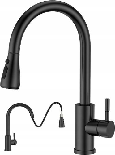 2-u-1 kuhinjska slavina s izljevom na izvlačenje, mat crna