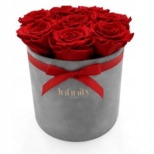 Ta kompozycja spodoba się nawet najbardziej wymagającym miłośnikom kwiatów. Klasyczne czerwone wieczne róże w połączeniu z welurowym pudełkiem i wyjątkowym zapachem sprawią, że obdarowana osoba będzie Cię ciepło wspominała przez długie miesiące.