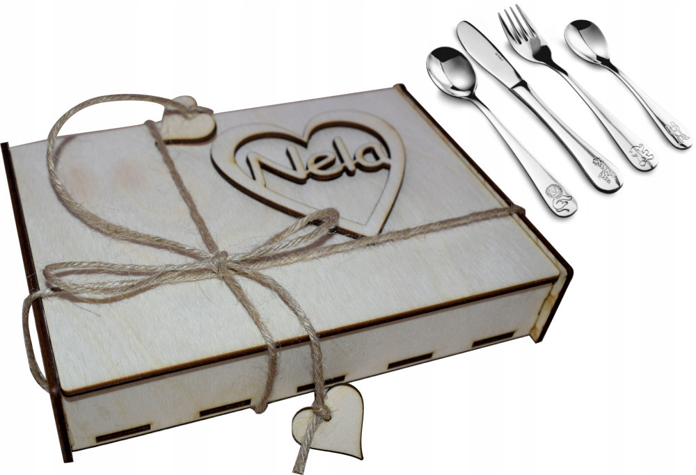 1). Imię dziecka lub inny dowolny napis do 10 znaków, który wygrawerujemy na sztućcach