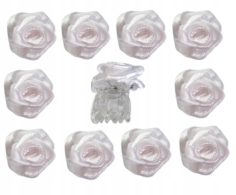 Bijele kopče za kosu s ružicom za prvu pričest - Set od 10