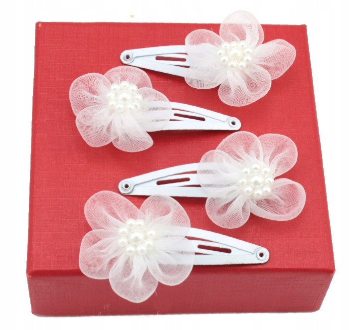 Spinki do włosów pyki z tiulowymi kwiatkami i perełkami