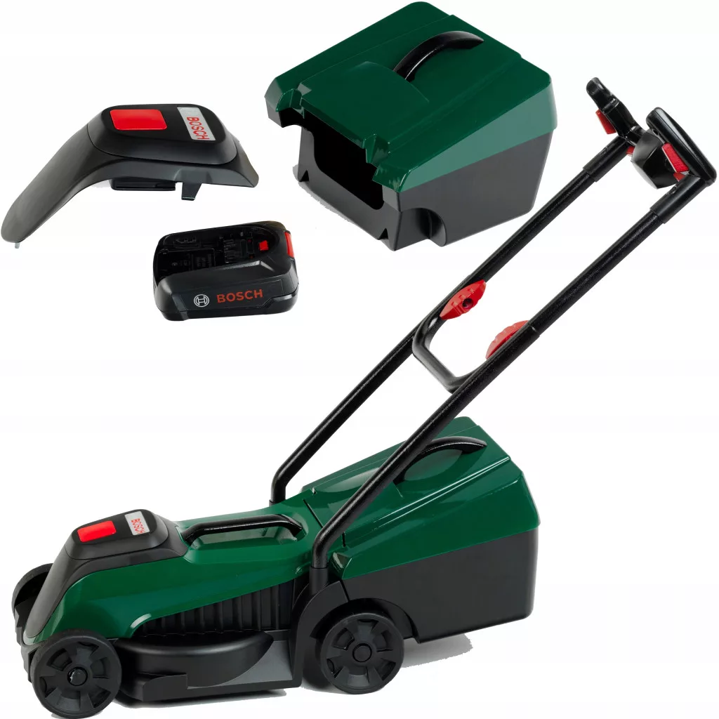 Zabawka zawiera moduł świetlno-dźwiękowy: podświetla się logo Bosch, a urządzenie wydaje realistyczne dźwięki pracy silnika i koszenia trawy.