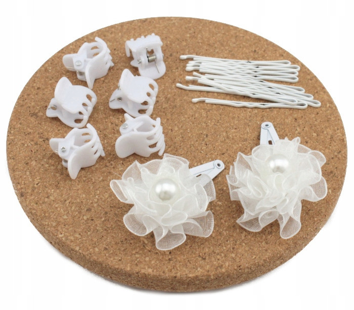 Zestaw ozdób do włosów dla dziewczynki wsuwki , krabiki żabki i spinki ozdobne w kolorze białym