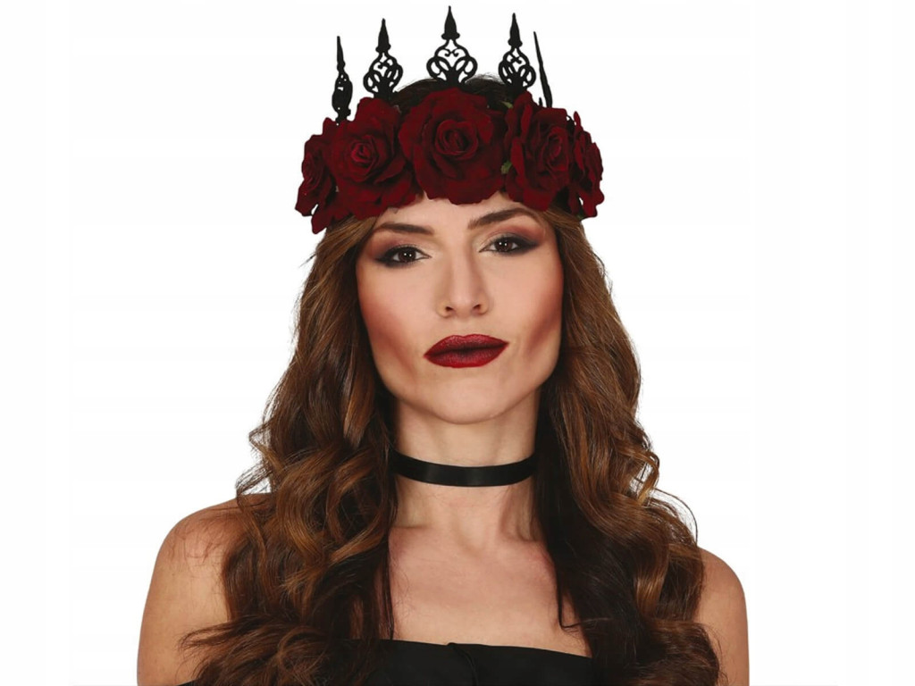 Korona z ciemnoczerwonymi różami na Halloween.