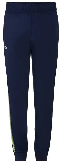 Uniwersalna jednocześnie stylowa propozycja marki Lacoste. Materiałowe spodnie w kolorze granatowym. Wykonane z dbałością o każdy szczegół. To idealny model do codziennego i aktywnego użytku. Na dole wykończenie ściągaczem, w pasie gumka ze sznórkami do regulacji. Spodnie są przeznaczone do uprawiania sportu i rekreacji. To wygodne i trwałe spodnie dresowe z graficznym wzorem.