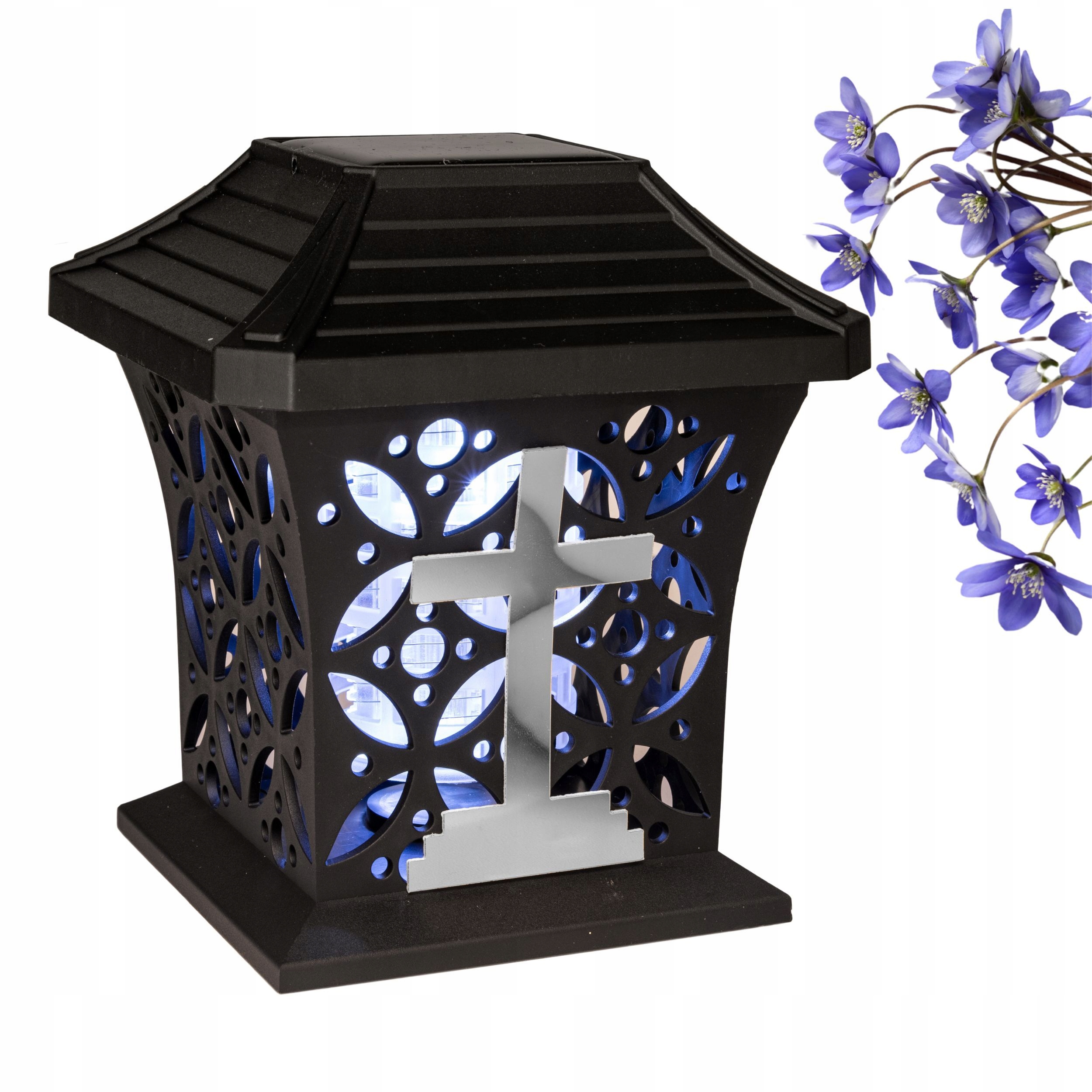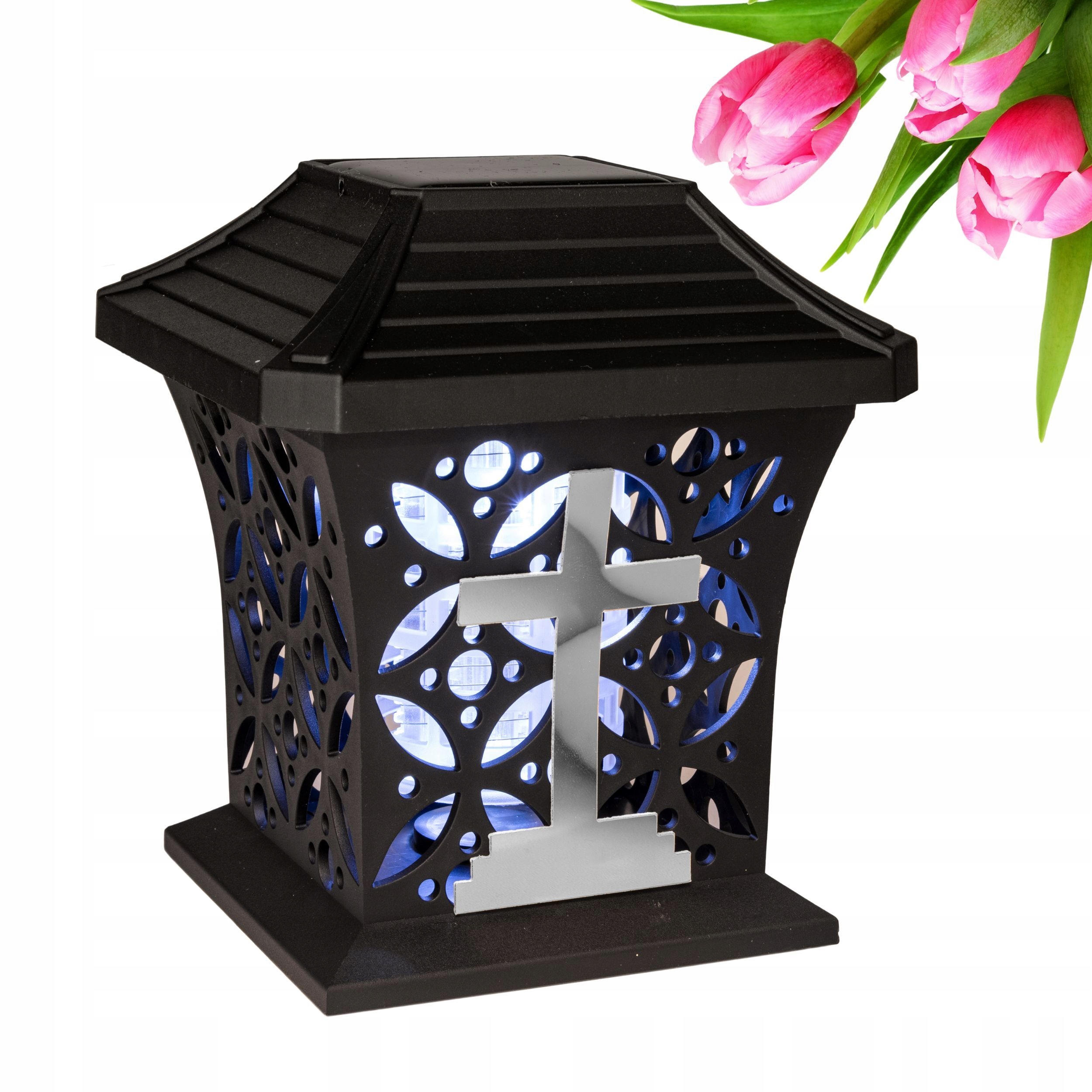 ZNICZ SOLARNY LED LAMPION NA GRÓB STATUETKA NA CMENTARZ Z KRZYŻEM