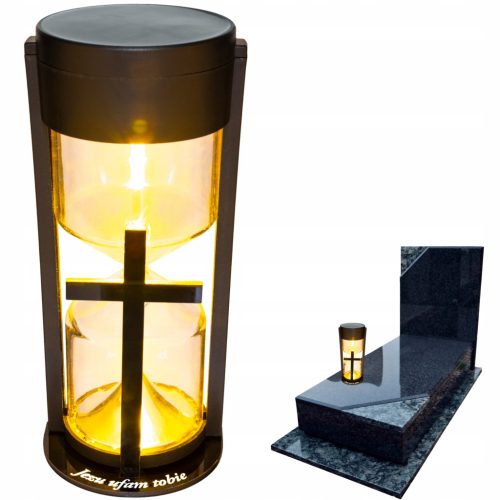 LAMPA SOLARNA ZNICZ NA GRÓB NOWOCZESNA INSPIROWANA KLASYKĄ ZE ZŁOTYM KRZYŻEM