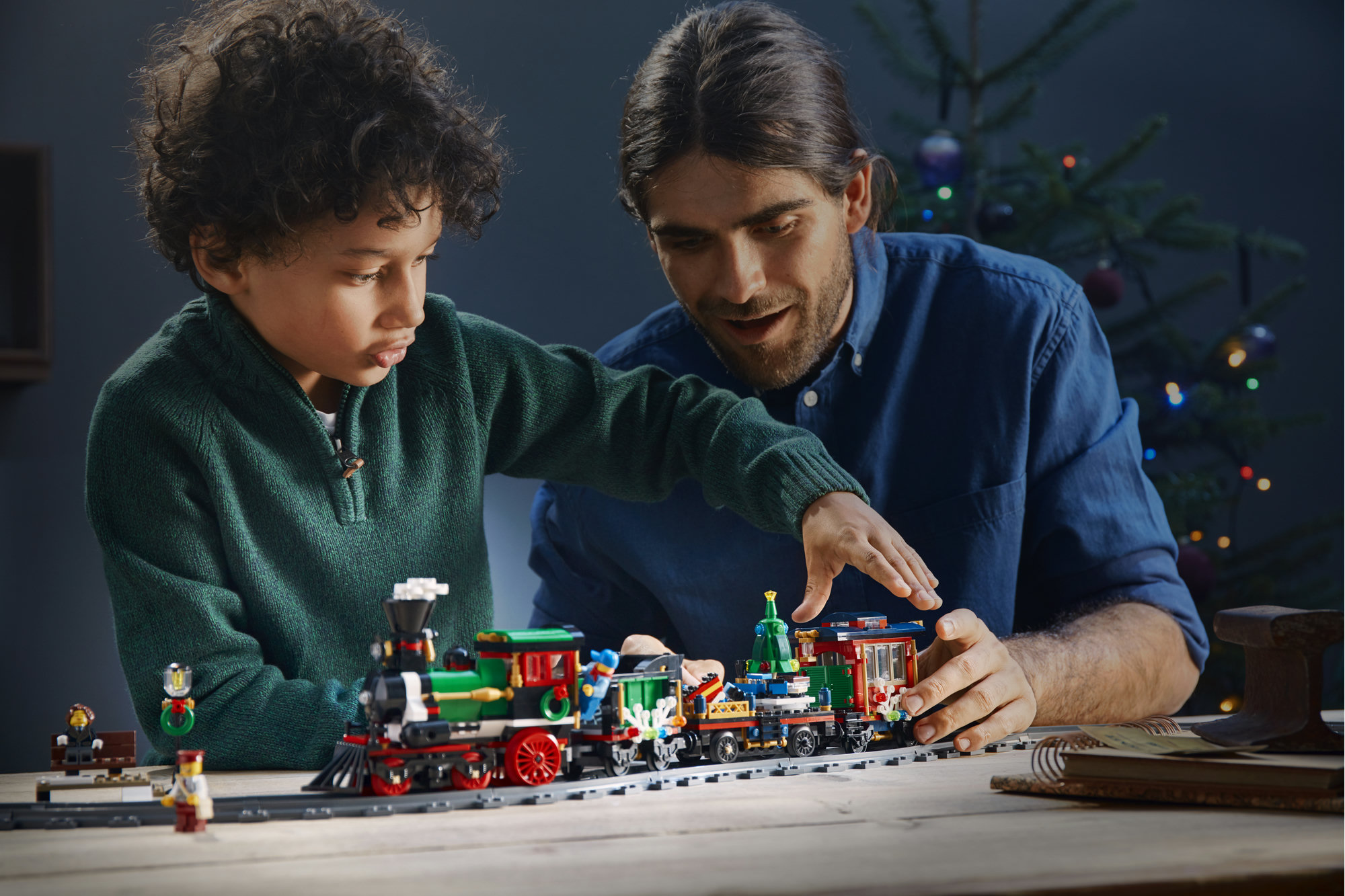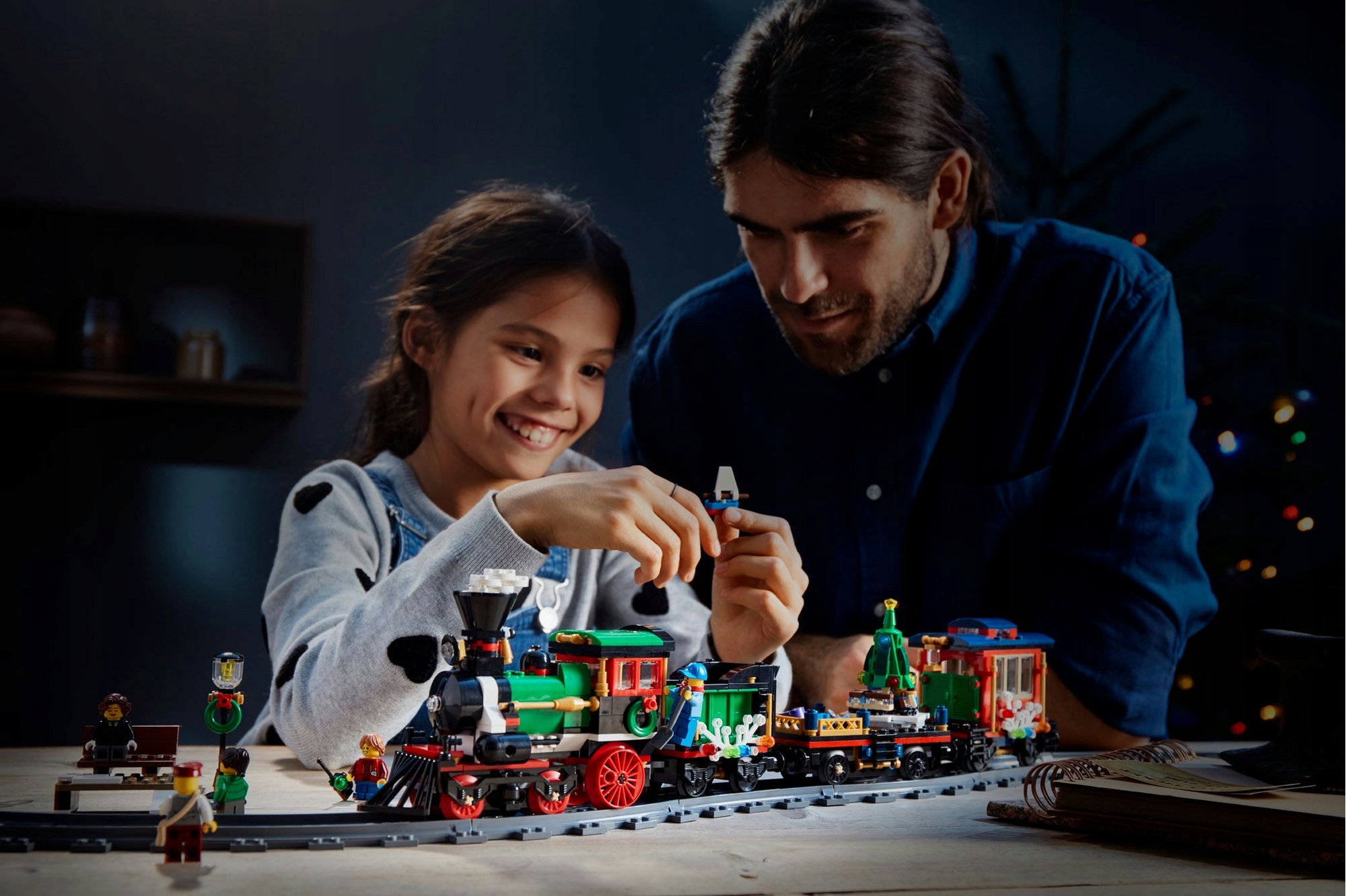 Ten model LEGO może dać całej rodzinie okazję do wspólnej, świątecznej zabawy. Są tu tory tworzące pełen okrąg, peron z ławką i latarnią, lokomotywa (z możliwością rozbudowania o napęd Power Functions), która wydmuchuje z komina dym zbudowany z klocków, węglarka, wagon-platforma z obracającą się choinką, zabawki i prezenty, a także czerwony wagon służbowy z pieczołowicie oddanym wnętrzem i stolikiem.