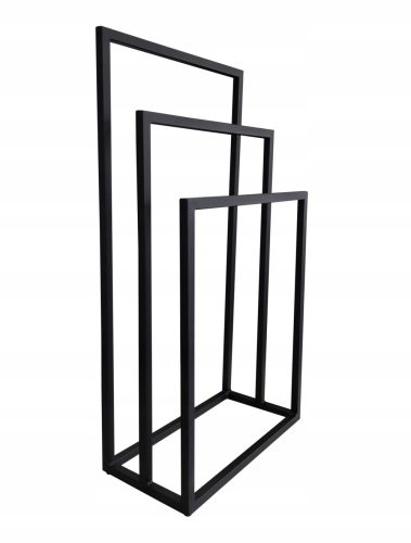 Stojak na ręczniki łazienkowe posiada trzy ramiona na różnych wysokościach. Stabilna konstrukcja zapewnia odpowiednią przestrzeń między wiszącymi ręcznikami, co przyspiesza ich suszenie.