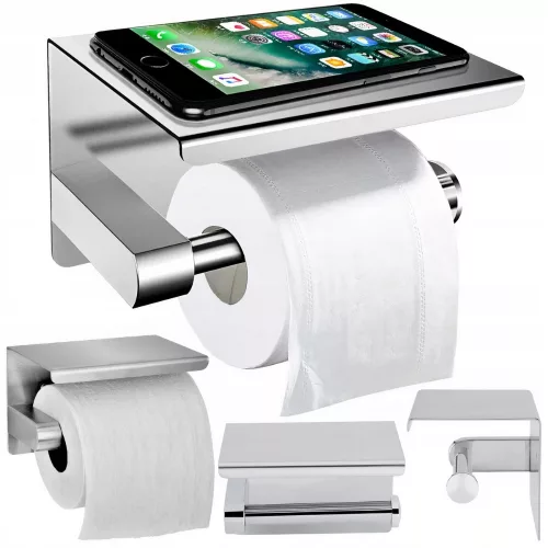 Otwarty uchwyt na papier toaletowy z półka na telefon i inne drobiazgi łazienkowe. Sprawi, że niezbędne rzeczy będą zawsze w zasięgu ręki. Nie zajmuje wiele miejsca a łączy dwie funkcje. Wykonany ze stali nierdzewnej malowanej proszkowo w kolorze srebrnym. Montaż za pomocą załączonych śrub i kołków.