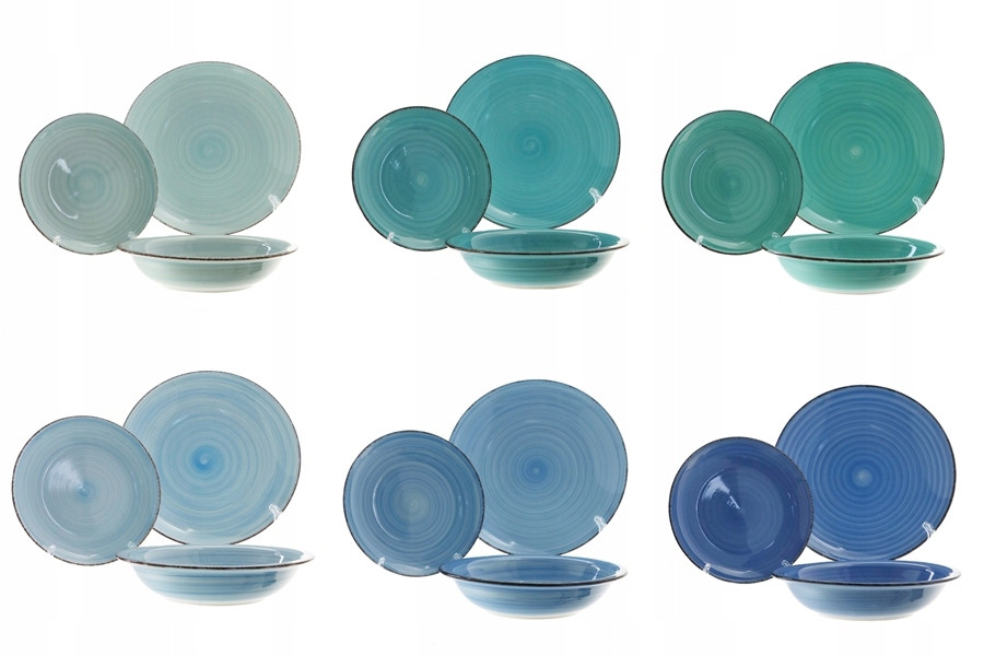 Mamy do zaoferowania piękny zestaw ceramicznych talerzy o 6 odcieniach koloru niebieskiego/ błękitnego/ morskiego/ lazurowego/ granatowego/ cyjanowego.