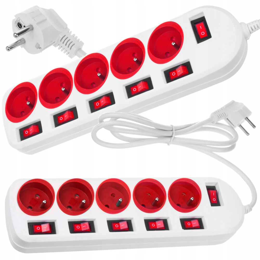 Listwa zasilająca z 5 gniazdami, pozwala podłączyć równocześnie aż pięć pełnowymiarowych wtyczek. Posiada zabezpieczenie przed dziećmi, podświetlany włącznik sieciowy oraz osobne wyłączniki dla każdego gniazda.