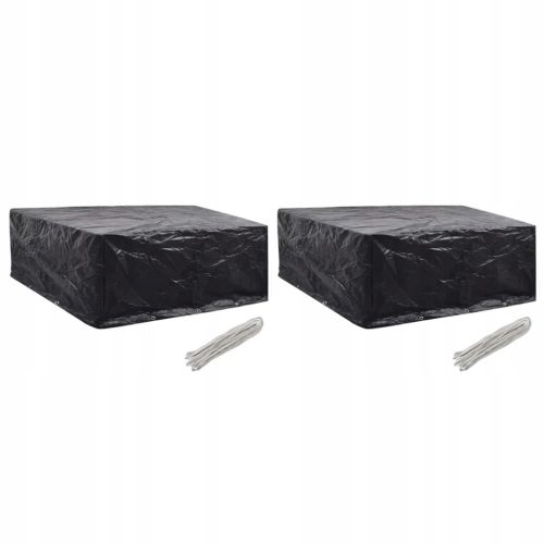 Pokrowiec wykonany jest z wytrzymałego polietylenu, który jest wodoszczelny, odporny na promieniowanie UV i rozdarcia, dzięki czemu nadaje się do codziennego użytku. Posiada 10 aluminiowych oczek oraz linkę mocującą, dzięki czemu możesz go dopasować do swojego zestawu. Przesyłka obejmuje 2 pokrowce na meble ogrodowe