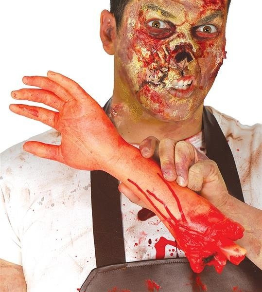 Odcięta ręka wykonana jest z elastycznego tworzywa w kolorze cielistym.