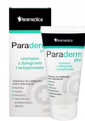 Szampon Paraderm Plus z dziegciem i octopiroxem przeznaczony jest do pielęgnacji skóry głowy z łupieżem, skłonnością do łuszczycy i nadmiernego przetłuszczania. Zawarte w nim bioaktywne składniki nawilżają skórę, niwelują uczucie swędzenia, a także skutecznie redukują nadmiar wydzielanego łoju.