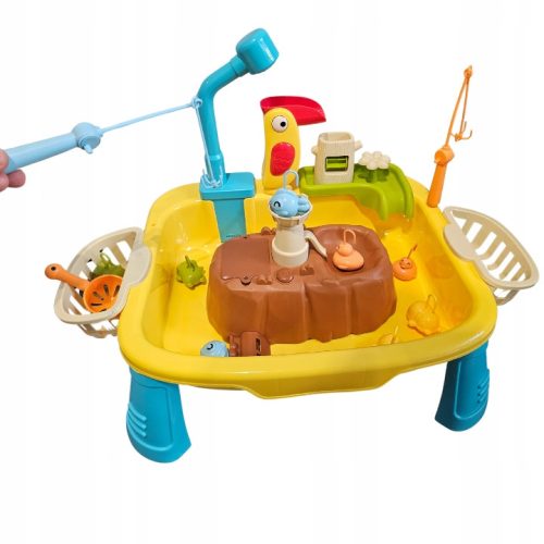 Cały zestaw - stolik pełniący funkcje piaskownicy - z wyglądu przypomina klimat piracki. Posiada wyspy i zjazdy, które uatrakcyjnią każdą zabawę. Podstawa jest szczelna - może więc być zasypana piaskiem lub równie dobrze zalana wodą.