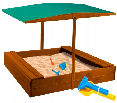 Piaskownica wykonana jest z suchego, czterostronnie struganego drewna iglastego, pozbawiona jest ostrych krawędzi. Pomalowana jest atestowaną farbą dekoracyjno - ochronną zgodną z normą bezpieczeństwa zabawek EN 71-3.
