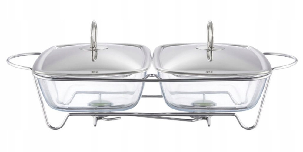 Podwójne naczynie wspaniale sprawdzi się podczas przyjęć i rodzinnych spotkań. Jest idealne do przygotowania potrawy jak i podtrzymywanie temperatury serwowanego posiłku, dzięki stelażowi na świeczki typu tealight. Wykonane zostało z wysokiej jakości szkła żaroodpornego, które można używać (bez stelaża) w temperaturach od -40*C do +300*C. Dodatkowo naczynia posiadają pokrywki ze stali nierdzewnej. Produkt (bez stelaża i pokrywki) można myć w zmywarce.