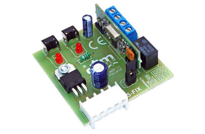 Karta radiowa S-FIX pracująca w systemie MULTI DTM433MHz jest odpowiednikiem odbiornika sterującego centralami bramowymi firmy FAAC. Pozwala na obsługę dwóch kanałów radiowych i 35 pilotów DTM System serii DTM433MHz (ZSP) lub/oraz niemal wszystkich pilotów zmiennokodowych KeeLoq.