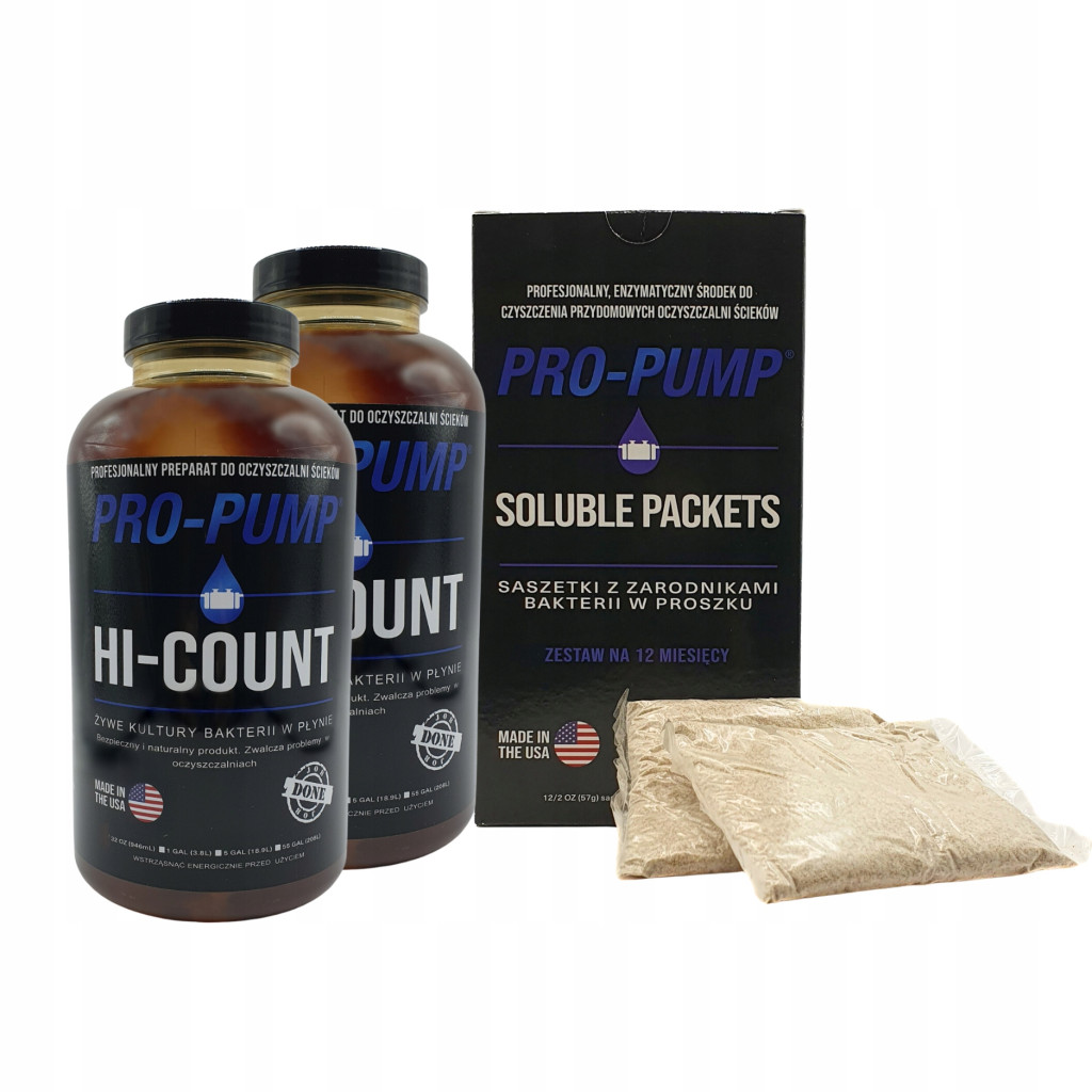 Pro-Pump/HC to aktywna formuła wegetatywna, zawierająca 11.4 miliardów mikroorganizmów (12 wybranych mikroorganizmów wegetatywnych o specyfikacji 400/500 milionów mikroorganizmów na/ml), które posiadają zdolność szybkiego usuwania trudno i wolnorozkładalnych związków w rurach, zbiornikach i systemach rozsączających. Większość uszkodzeń drenaży rozsączających jest wynikiem stałego gromadzenia się wolno rozkładalnych związków na obszarze rozsączającym. Tworzą one tzw. biomatę, która w dłuższym okresie się nabudowuje i powoduje awarie systemów. Bakterie w Pro-Pump mają długi termin ważności w zamkniętym opakowaniu. Są uśpione do momentu wprowadzenia do systemu.