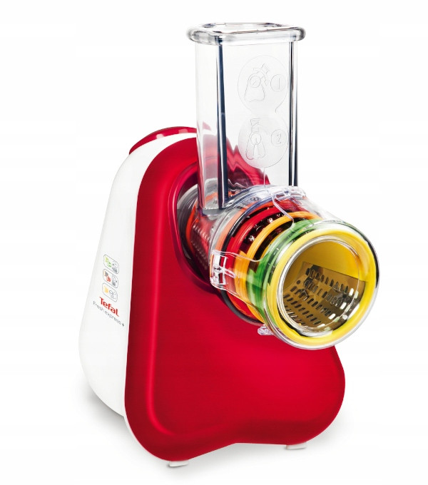 Szatkownica Tefal Fresh Express + zapewnia różnorodność i oryginalność Twoim posiłkom! Zetrzyj, pokrój lub posiekaj składniki bezpośrednio na talerzu i gotowe. Wszystko to dzięki łatwym w użyciu oznaczonym kolorami stożkom i dużej tubie podającej.