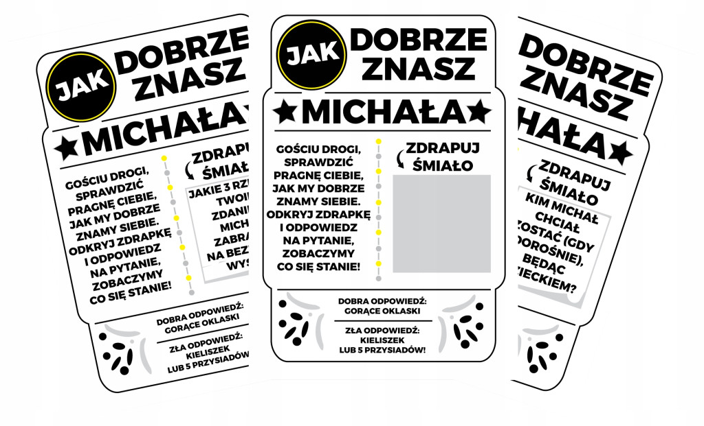 ORYGINALNA ZABAWA NA KAŻDĄ IMPREZĘ - KUPONY ZE ZDRAPKAMI "JAK DOBRZE ZNASZ TWOJE IMIĘ" - Te zdrapki, zapewnią Tobie i Twoim znajomym super rozrywkę!