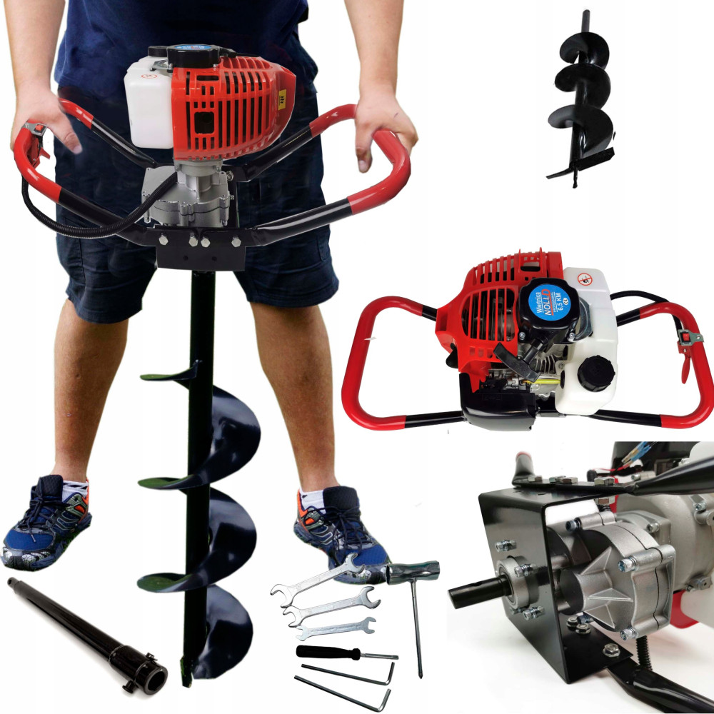 kompaktowa wiertnica glebowa z napędem spalinowym, znanej i cenionej marki NOLLD. Wiertnica o mocnej i trwałej konstrukcji, wykonana z materiałów wysokiej jakości. Wiertnica wyposażona w dwusuwowy silnik o mocy 6,5 kM. Świder spalinowy dedykowany pracom związanym z ogrodnictwem i kształtowaniem krajobrazu, niezastąpiony podczas wszelkich robót ziemnych, do przygotowywania gruntów pod zalesianie, uprawy, do wiercenia otworów pod słupki ogrodzeniowe oraz wielu innych pracach ziemnych. Optymalnie dobrane obroty przekładni pozwalają na pracę Bez większego obciążenia dla operatora. Bezpieczeństwo podczas pracy gwarantuje sprzęgło odśrodkowe.