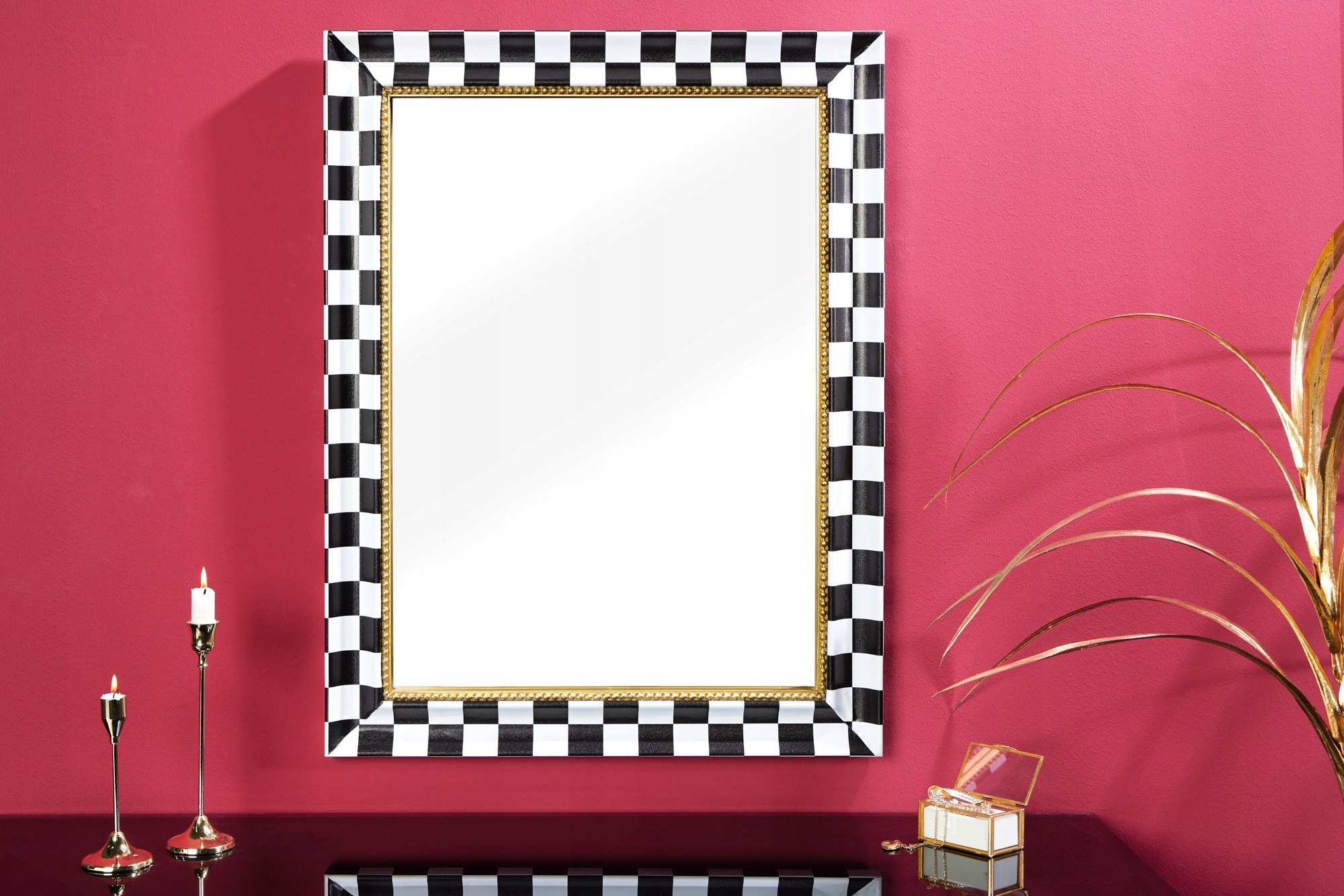 Wzór szachownicy ze złotymi wykończeniami
