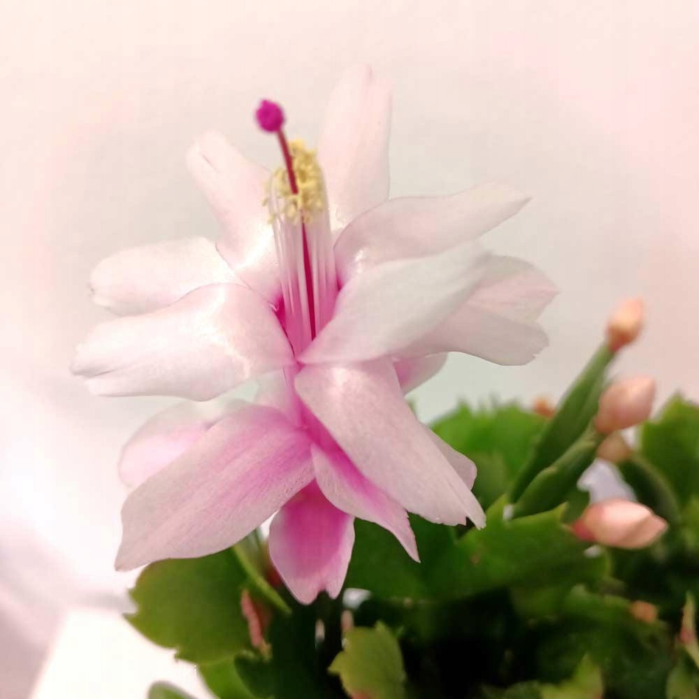 Schlumbergera Anapolis Pink, znana jako grudnik lub kaktus bożonarodzeniowy, to wyjątkowa roślina doniczkowa, która potrafi ożywić każdy zimowy dzień swoim pięknym kwitnieniem. Jej mięsiste, segmentowane łodygi w odcieniach ciemnej zieleni są uzupełnione jasno- różowymi kwiatami, które rozkwitają w okresie świątecznym, tworząc niezwykły kontrast i przyciągając wzrok. Schlumbergera to prawdziwa ozdoba domu, która wprowadza atmosferę ciepła i radości w najchłodniejszych miesiącach roku.