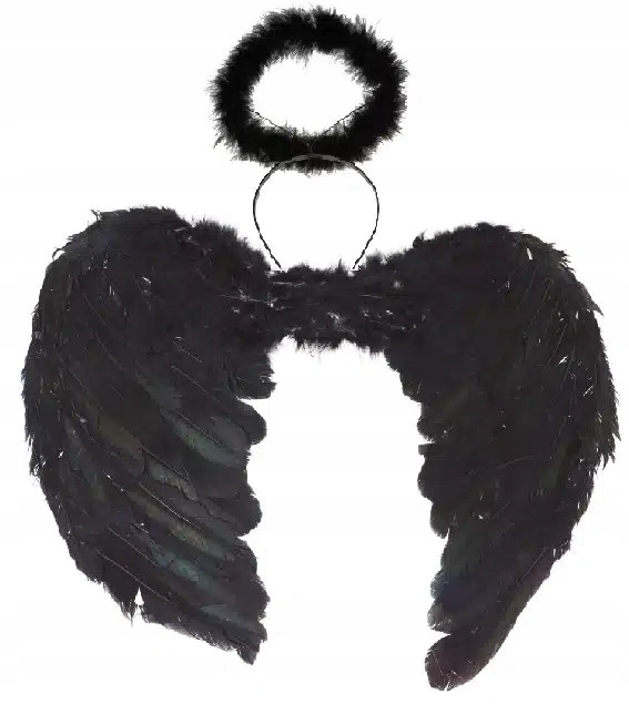 Zestaw Upadełego Anioła skrzydła czarne 60 x 45 cm + czarna aureola