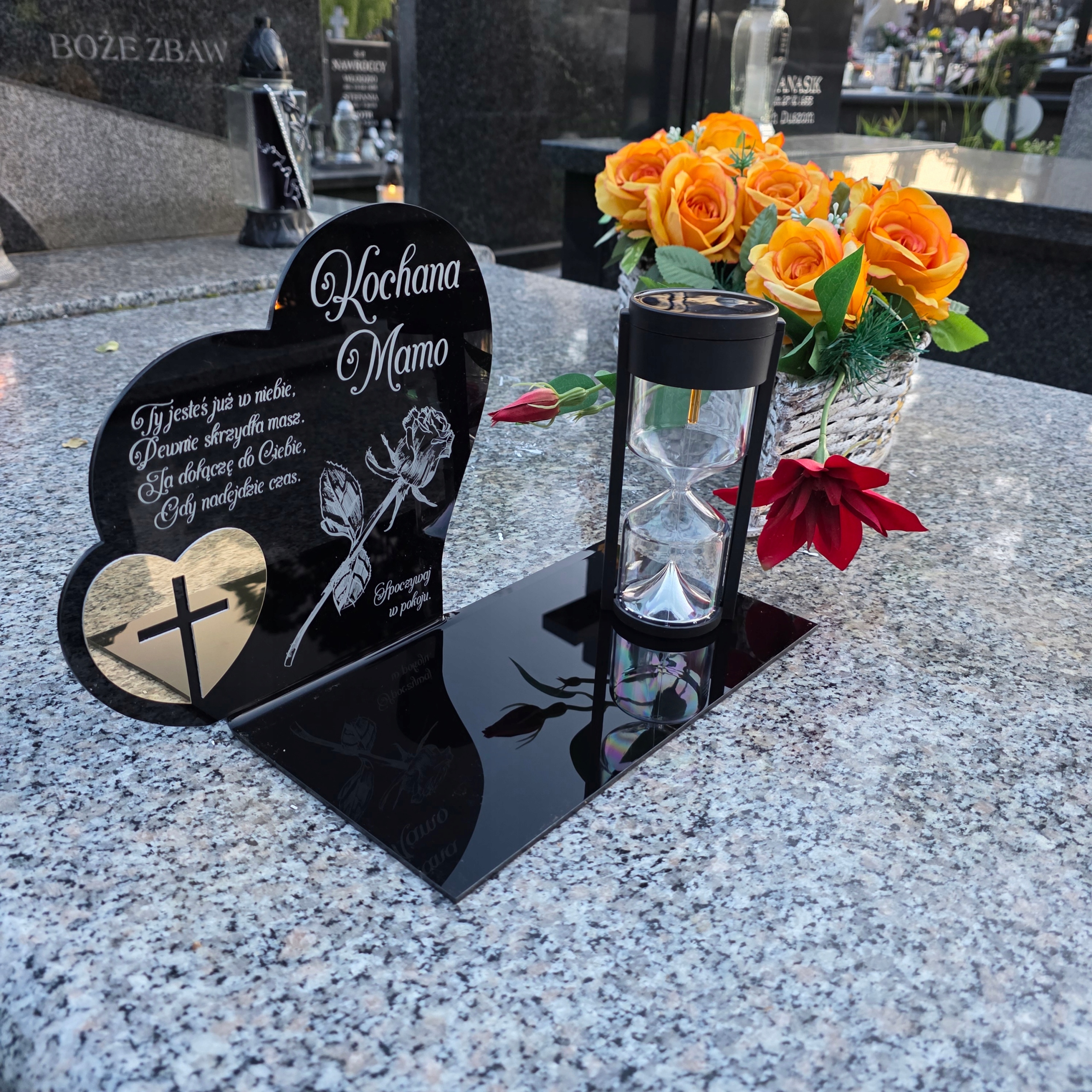 • tabliczka z sentencją nachylona pod lekkim kątem