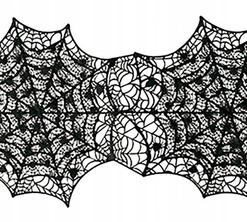 Czarny - wąski obrus - bieżnik w kształcie połączonych pajęczyn. Bieżnik wykonany jest z ażurowego, gumowego tworzywa. Na długość zawiera 4 pajęczyny, które można także obciąć i wykorzystać jako serwety lub podstawki (nie są termicznie odporne). Nakrycie stołu jest dość trwałe, wielokrotnego użytku. Pajęczy bieżnik znakomicie dopełni dekorację stołu czy ławy podczas Halloween, zwłaszcza w nawiedzonym domu i u pajęczym królestwie.