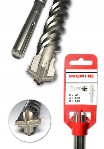 Wiertło posiada bardzo dobre właściwości. Wyróżnia się tym, że jest krzyżowe - ma 4 krawędzie tnące co znacznie przyśpiesza pracę w murze i betonie. Ma podwójną spiralę co przyczynia się do zwiększenia wydajności odprowadzania urobku (np. pyłu, kawałków cegły, itp.)