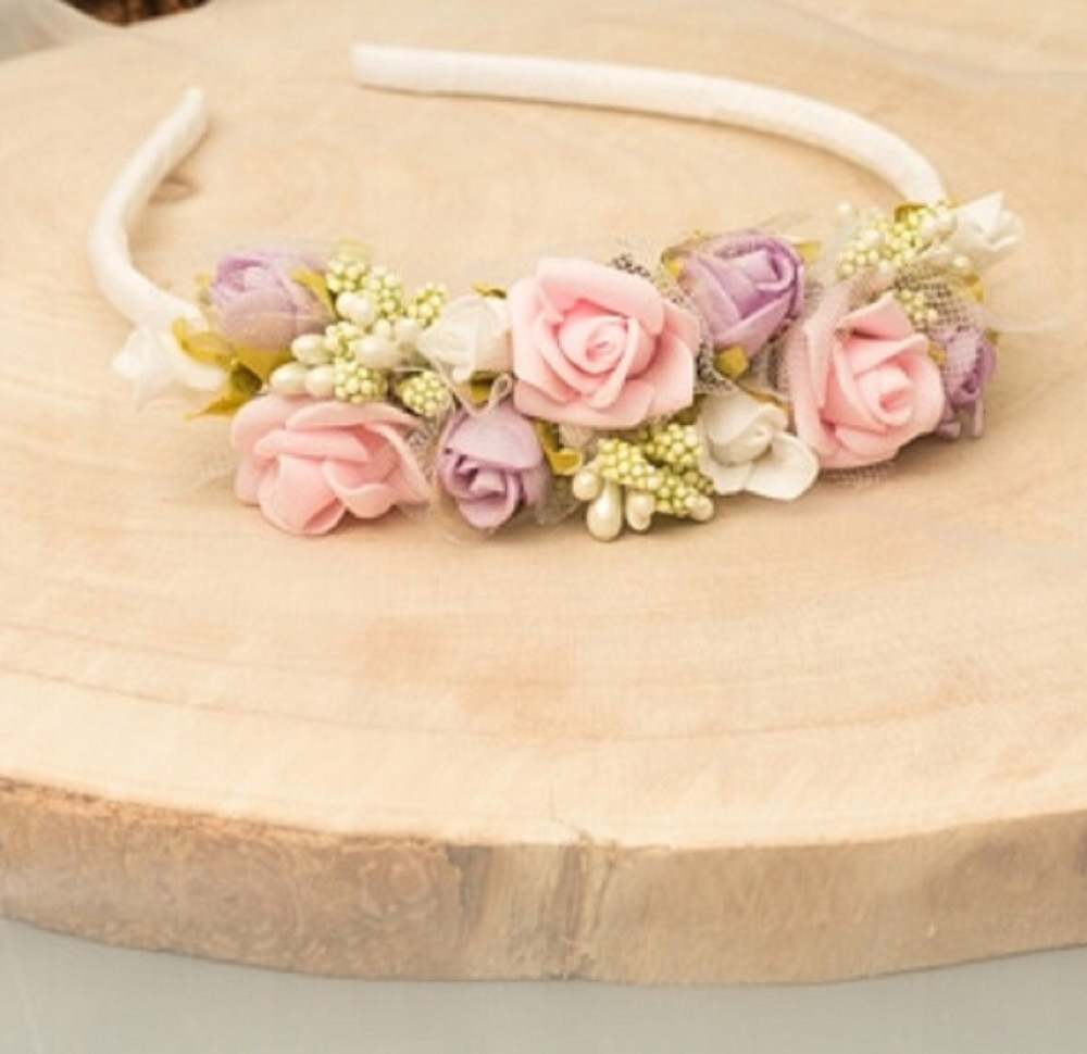 Lekkaopaska do włosów, ręcznie ozdobiona lśniącymi akcentami oraz pięknymi kwiatami zachwyci przy wielu okazjach. Idealnie pasuje na Biały Tydzień.