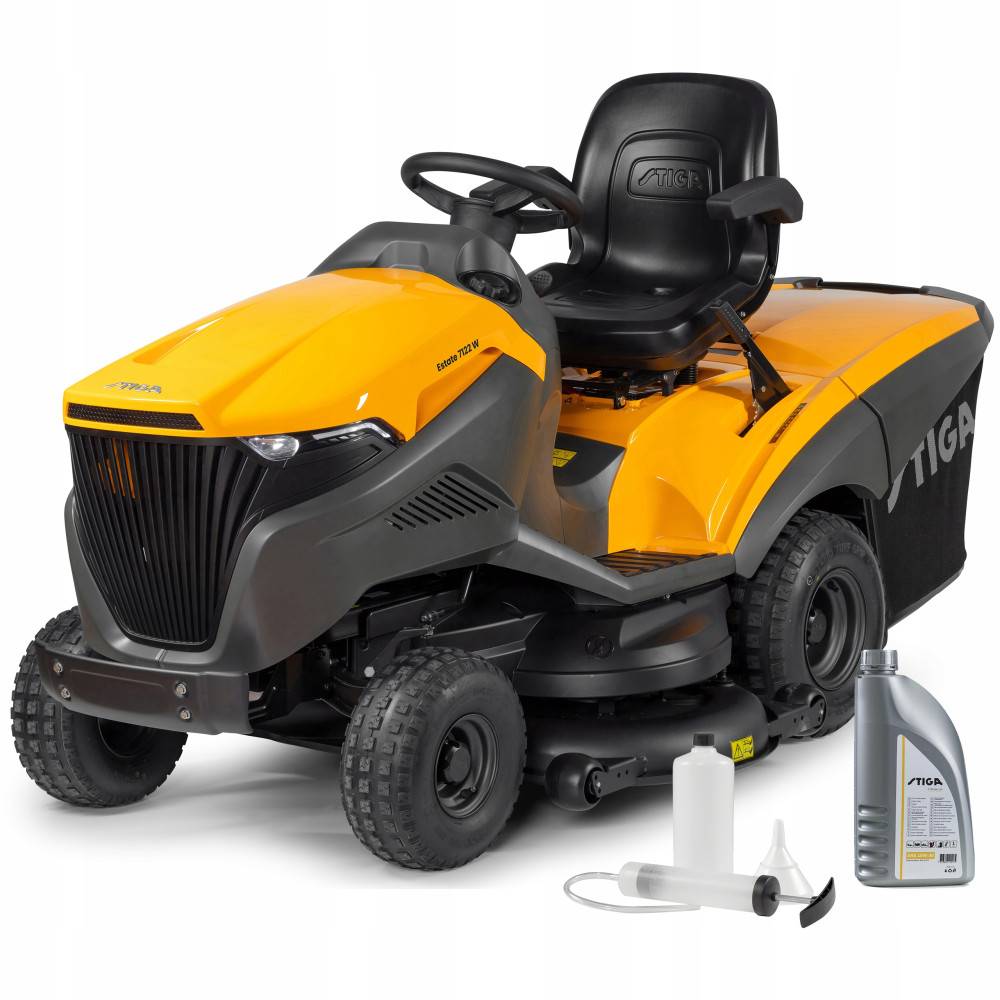 Traktor jest gotowy do użycia po zalaniu paliwa i oleju 10W30. Odpowiedni oraz oryginalny olej STIGA 10W30 otrzymujesz w zestawie.