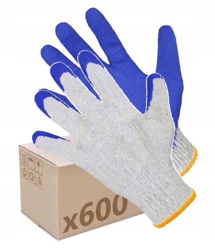 Uniwersalne rękawice ochronne wykonane z przewiewnej dzianiny bawełnianej powlekane lateksem. Rękawice bezszwowe, zakończone ściągaczem z lamówką.