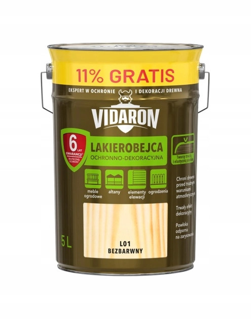 LAKIEROBEJCA VIDARON ma w swoim składzie unikalne połączenie wysokogatunkowych żywic, dzięki czemu tworzy na powierzchni malowanej, elastyczną powłokę powodującą szybsze spływanie wody. Powłoka ta zapobiega też wypłukiwaniu substancji ochronnych, jednocześnie nadając połysk, który pięknie eksponuje wszystkie walory drewnianej powierzchni.