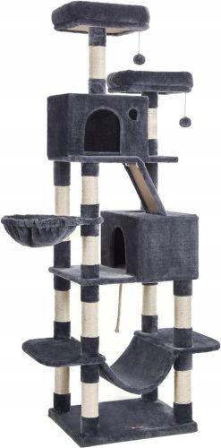 Produkt może być używany jednocześnie przez 6 kotów, a słupki owinięte liną sizalową pozwolą zaspokoić chęć drapania chroniąc tym samym meble przed zarysowaniami.