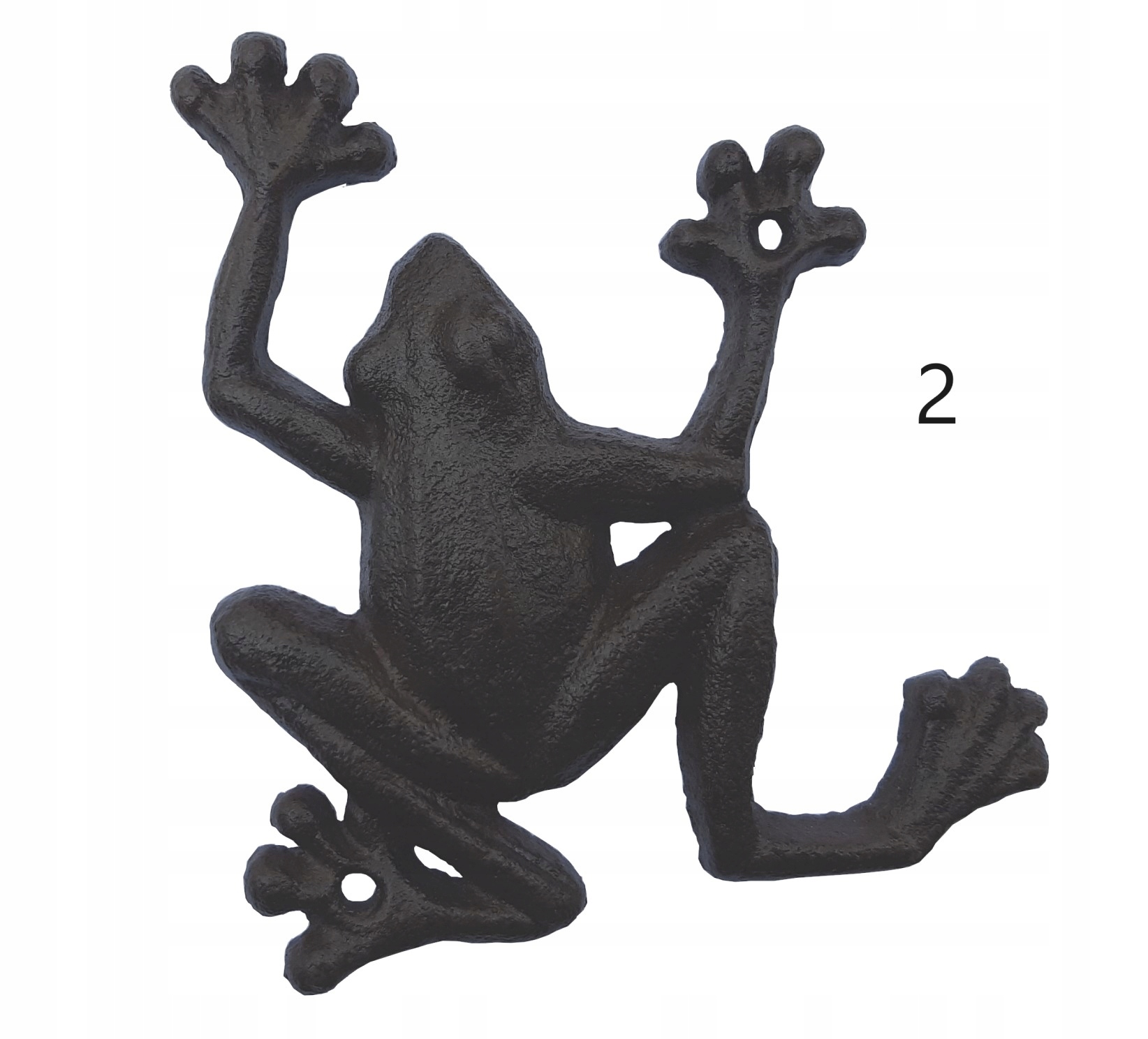 Żaba posiada otwory, dzięki czemu mozna ja zamontować na ścianie lub innym elemencie dekoracyjnym ogrodu.